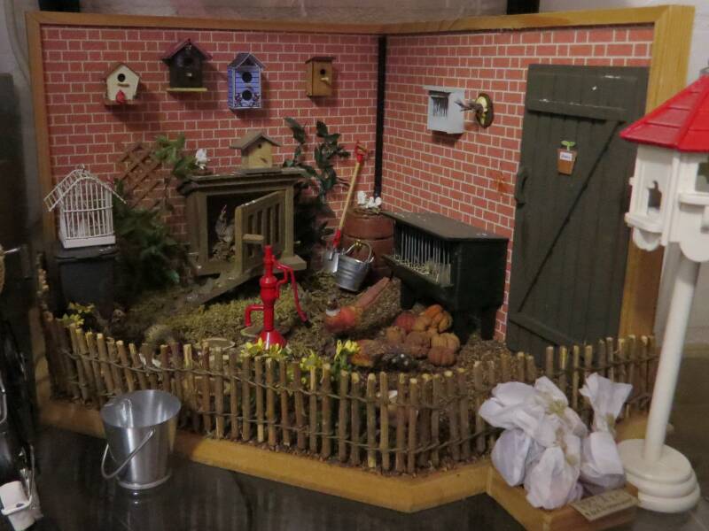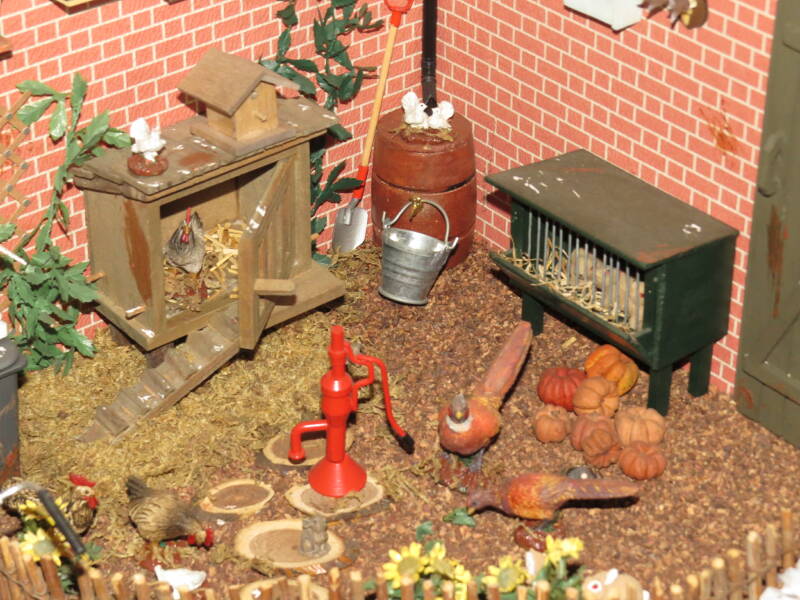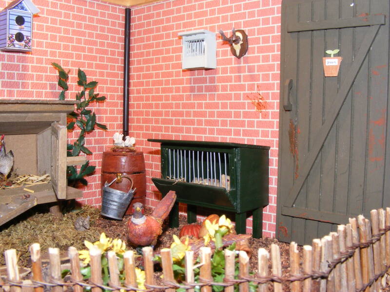 De grote hobby van mijn echtgenoot is zijn volkstuin met allerlei pluimvee, zo ziet dat er ongeveer uit in miniatuur
